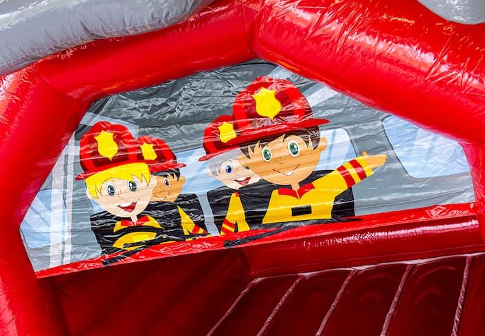 Ons springkussen brandweer is een vrolijke inflatable in opvallende kleuren. Geef je kind de beleving dat ze in een echte brandweerwagen staan. Het springkussen heeft wielen, brandweeraccessoires en een team met brandweermannen.